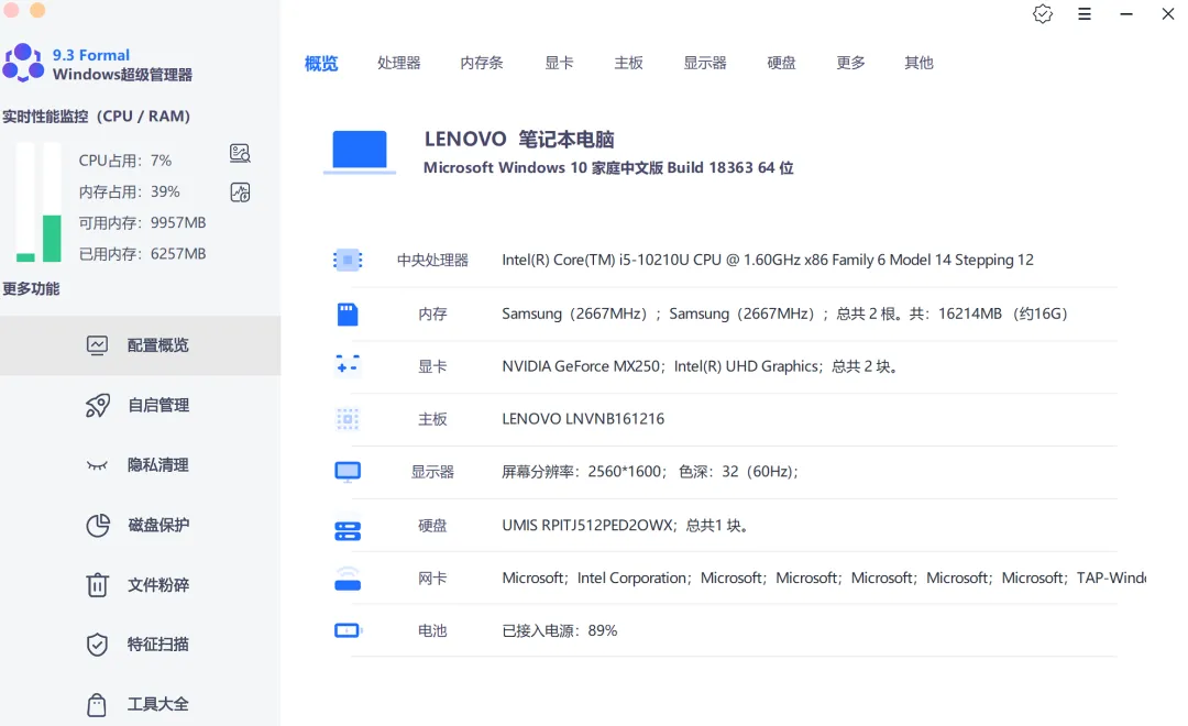 对于电脑维护类软件小编分享的还是比较少的,因为大家基本手机用的比较多,但是如果哪天使用的电脑遇到了一些问题、麻烦那都是要自己解决的。 那么今天分享一款电脑“管理器”,有股电脑端瑞士军刀的感觉,而且软件很小,但是支持的功能也非常的多,强不强下面看小编给大家”吹“。 电脑超级工具 (软件链接在文章底部) 适用平台:Windows端 软件是某个小团队开发的,虽然说小但是”五脏俱全“,软件无需安装,打开就能用。 如下图所示是打开后的主界面,引入眼帘的是你电脑配置信息,你可以通过它轻松了解你电脑的信息。 左侧是它的主要功能说明:自启动管理、隐私清理、磁盘保护、文件粉碎、特征扫描以及一个工具大全。 比如隐私清理,它可以对你的电脑隐私痕迹进行清理,比如:系统临时文件、更新文件、日志、系统休眠文件、补丁包等等。 再比如:文件粉碎有时候删除一个文件,其实只是表面上的删除,没有用永久的删除;懂的人可以轻松找回,那么想彻底删除一个文件,可以试试文件粉碎。 此外工具大全里面小工具也不错,很多实用的小功能都有,比如:断网急救、坏点检测、文件夹伪装、文件加密、二维码生成等等一共16个小功能。 文件夹伪装就很有意思,轻松把任意的文件夹伪装成”回收站、打印机等。 软件很小功能很多,大家留着备用吧。 资源获取↓ 电脑超级管理器【PC端】:https://www.123865.com/s/F739-fZuQ3 备用地址:https://hefen.lanzoue.com/b00q03zb1i 相关文件下载地址 本地直接下载 ©下载资源版权归作者所有;本站所有资源均来源于网络,仅供学习使用,请支持正版!